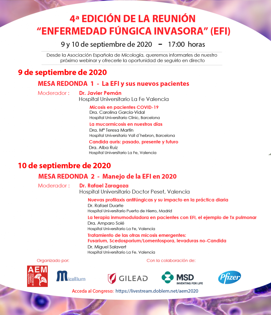El 9 y 10 de septiembre se celebrará la 4ª edición de la reunión sobre enfermedad fúngica invasora, con la presencia de tres de nuestros patronos (Dres. Pemán, Zaragoza y Solé).