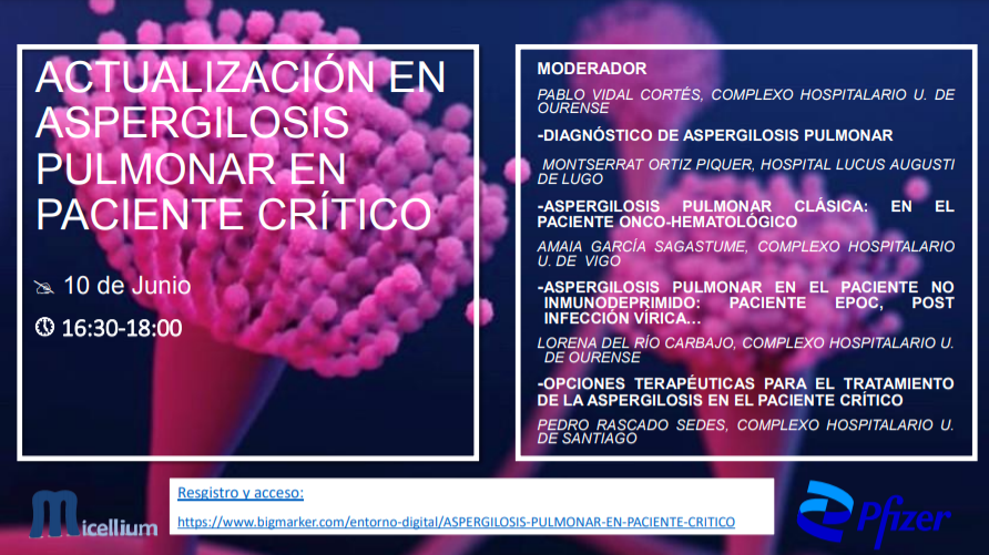 El 10 de junio se celebrará la sesión online «Actualización en aspergilosis pulmonar en paciente crítico».