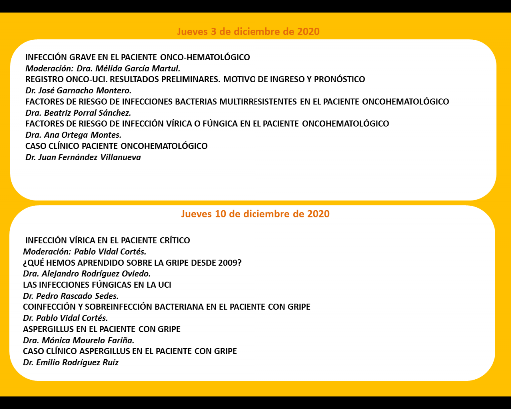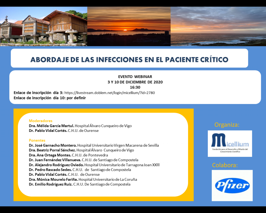 Los días 3 y 10 de diciembre tendrá lugar en formato online el ciclo de conferencias sobre Abordaje de las Infecciones en el Paciente Crítico.